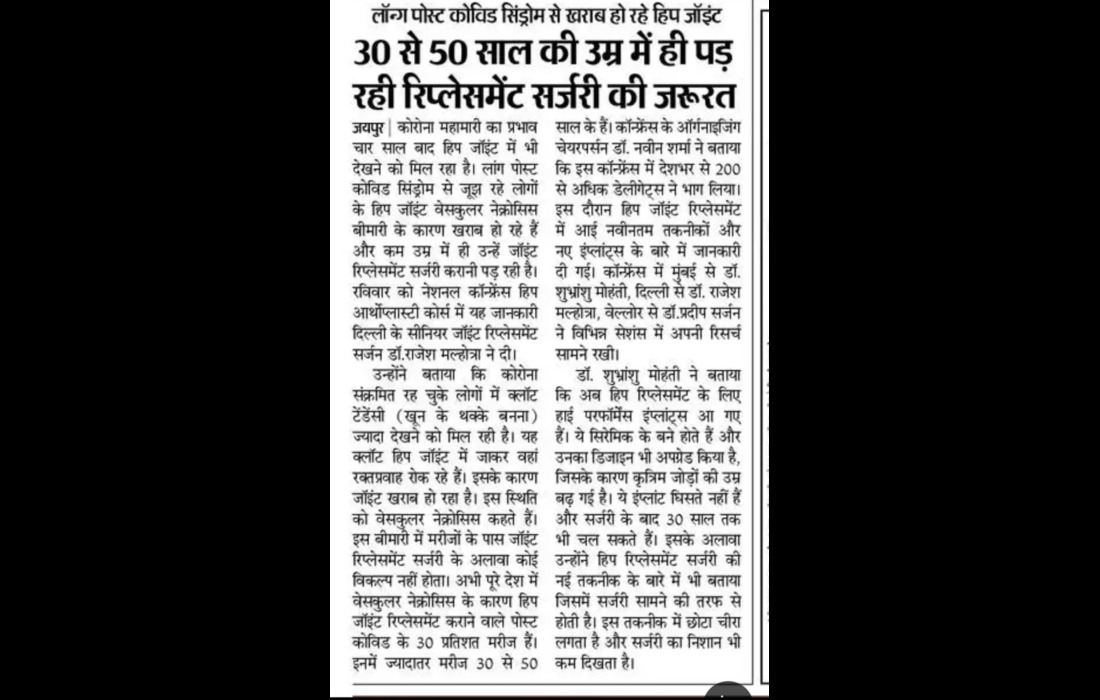 Fellowship-trained care in arthroscopic ACL/PCL & shoulder stabilisation, plus advanced knee and hip replacements with structured rehab and transparent packages. Dr. Naveen Sharma is one of the leading orthopedic surgeons in Jaipur, specializing in joint replacement and arthroscopic surgery. With over 21 years of experience and 11,000+ successful surgeries, he is considered among the best orthopedic doctors in India. Dr. Sharma completed his post-graduation in Orthopaedics from the prestigious KEM Hospital, Mumbai. Following his MS in Orthopaedics, he has worked at several top hospitals across India and abroad, including appointments at Kokilaben Dhirubhai Ambani Hospital and Nair Hospital, Mumbai. To further enhance his expertise, he completed fellowships in advanced knee and shoulder surgery from Germany and South Korea. His global exposure and advanced training make him a trusted name for knee replacement, hip replacement, arthroscopy, and sports injury treatment in Jaipur. Dr. Sharma is an active member of the Indian Orthopedic Association and regularly contributes to medical research published in peer-reviewed journals indexed by PubMed. We believe in empowering patients with knowledge. Learn more about joint health and orthopedic care from these trusted resources: Browse our blog for expert articles on recovery tips, frequently asked questions, and detailed procedure guides. Advance Orthopedic & Sports Injury Hospital (AOSIH) Office Hours: